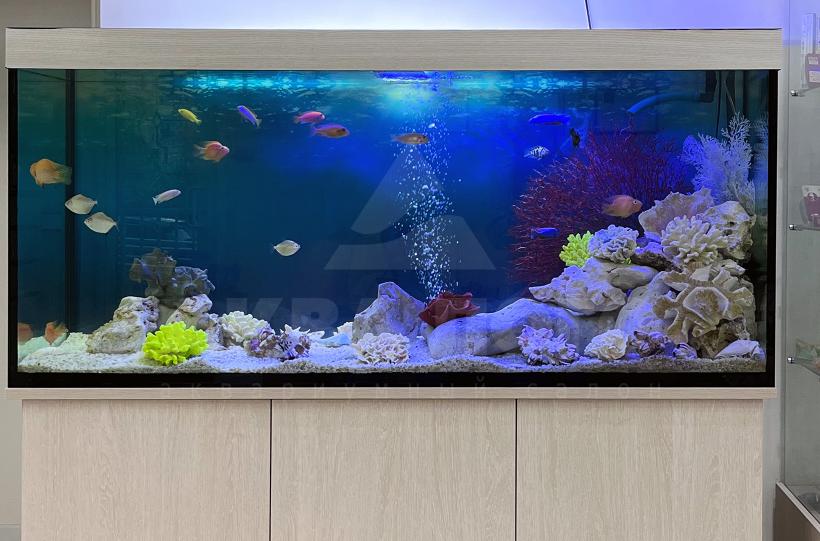 Аквариум установлен в зоне ожидания стоматологической клиники, в нем было выполнено переоформление.