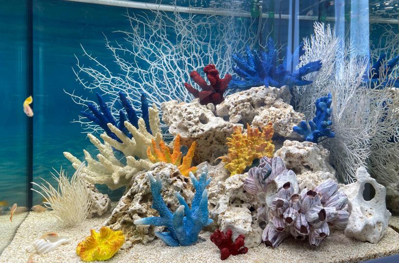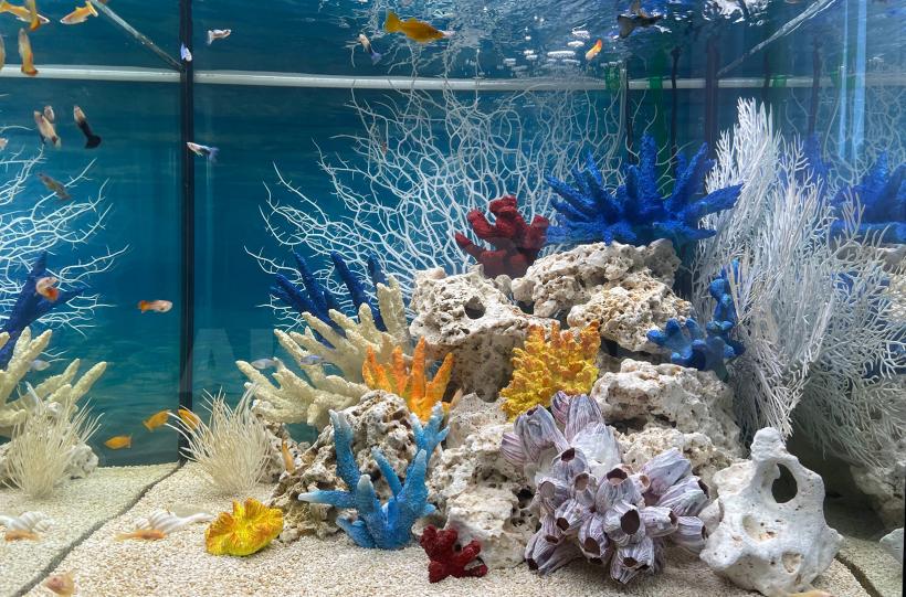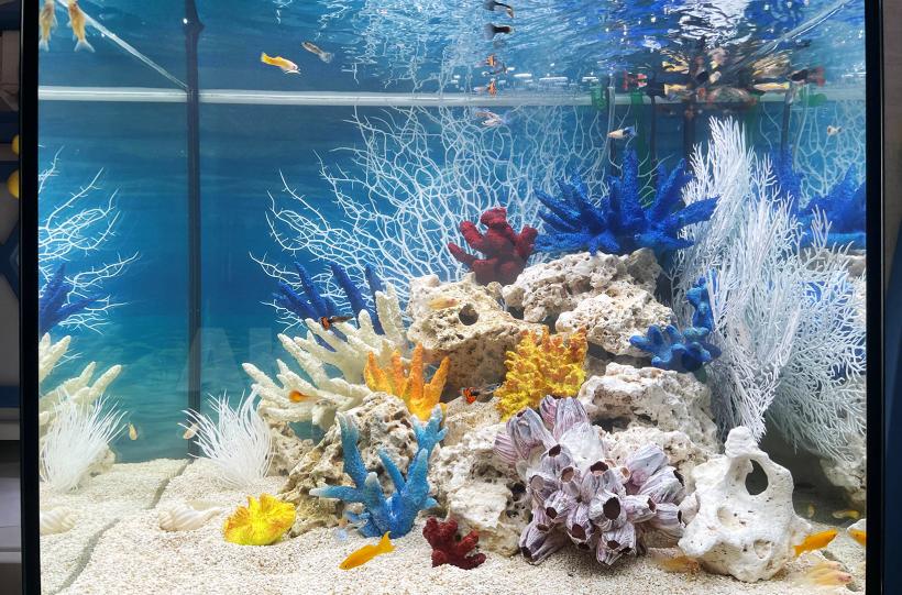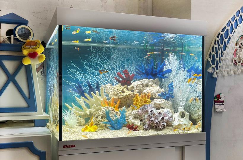 К нам обратились клиенты с просьбой оформить пресноводный аквариум в морском стиле в детскую сыну. Сын мечтал о гуппи и хочет вести видео-блог о рыбках.