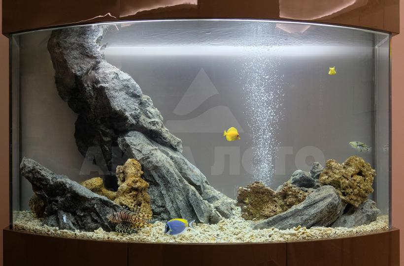 Морское оформление "рыбное море" в панорамном аквариуме объемом 380 литров