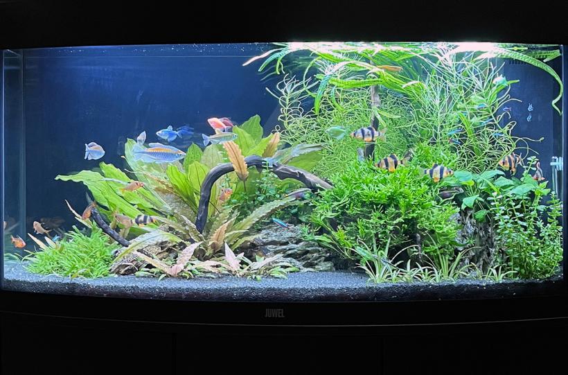 Аквариум Juwel объемом 180 литров был оформлен около года назад и находится на обслуживании в секторе сервиса Аква Лого. Ухаживает за аквариумом ведущий специалист сектора сервиса Вероника Кузнецова