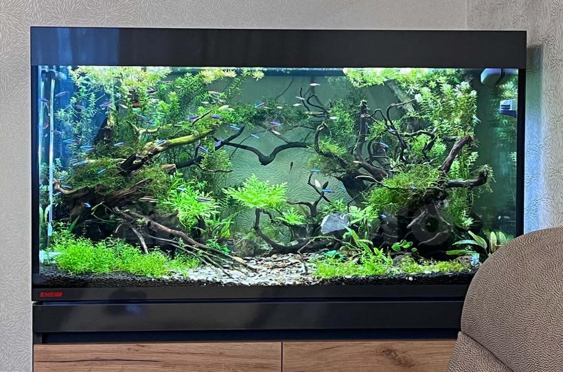 Этот аквариум Eheim Incpiria объемом 330 литров оформлял Михаил Пешков. Он специализируется на растительных оформлениях, любит их за то, что в результате получается живая картина.
